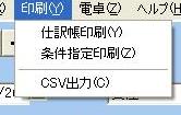 | 印刷(Y) a)仕訳印刷 指定期間の仕訳帳をレポート(プレビュー・印刷)出力します。 b)条件指定印刷 条件指定セクションで指定した条件でレポート(プレビュー・印刷)出力します。 c)CSV出力 条件指定セクションで指定した条件でCSV形式で出力します。データを加工したい場合等に利用できます。 上記a,bのレポートはRAVE形式のファイルとしても保存可能です。(拡張子ndr) |