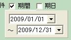 | 期間指定 | 期間のチェックボックスをクリックしマークすると日付の指定項目が表示されます。いつからいつまでの期間を対象とするのかをカレンダーから指定します。 期日のチェックボックスをクリックしマークすると一項目のみの表示になり、特定の日付のみの条件指定となります。 |