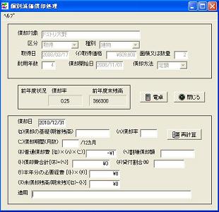 画面例は物件ドミトリ大野の2010年度の償却例です。