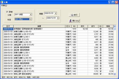複式簿記対応家計簿ソフトビッキー2 Bikky02 元帳