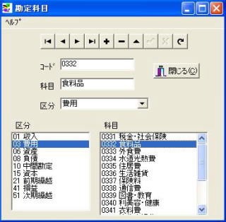 勘定科目の設定画面