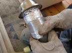 換気用のファンはちょっと小さめです。100mmの排水管を流用して換気用のダクトとしました。
