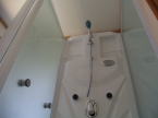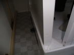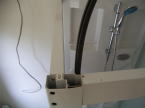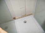 排水用の管は事前にシャワーの排水用に用意しておきます。床ユニットに排水トラップは一体でセットされています。裏面での作業を考慮して裏のトイレ側から壁を取り外せるようにしてあるのでシャワユニットは壁ぎりぎりに配置ができました。裏面での作業考慮して配置を決める必要があります。