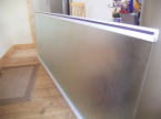 ・天板の保護カバーを剥がします。照明と換気扇をいったん外さないと綺麗に剥が外せませんので一旦外します。天板を本体の上に載せボルトで固定します。