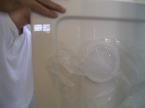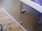 ・奥のパネルと床パネル、左右のパネルとはネジで固定しますが、固定する前にコーキング材で防水対策を行います。コーキング材はホームセンタで別途購入します。白か透明のものを準備しておきます。