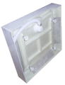 強化ガラスの左右の壁用パネルが2枚と扉用が1枚、床パネルと天井パネル、奥側のパネル