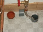 スペースの関係で洗濯機置き場を奥に配置したため洗面台を簡単に移動できるようにする必要があります。給水関係は壁に固定し、洗面台を移動可能とし、洗濯機の出し入れの必要が生じた場合に簡単にスペースを確保できるような構造にします。
