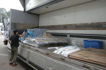 運転手一人でのお届けです、荷降ろしのお手伝いをお願いします。