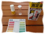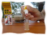 酸性・アルカリ性は中学校の時理科の実験でリトマス試験紙を使って調べましたよね。でもリトマス試験紙では酸性かアルカリ性かは分かっても度合いが分からないのでやはり専用の道具が必要のようです。専用の測定機器も売られているようです。今回はもっとも安く土の酸度が測定できる住友化学園芸の酸度測定液である「アースチェック」液を使ってみました。