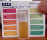 (8)色がかわるので、添付の比色表に照らして酸度を判定します。